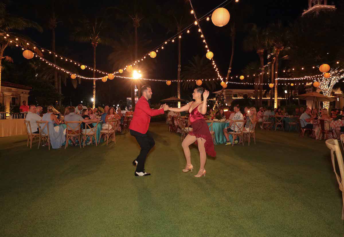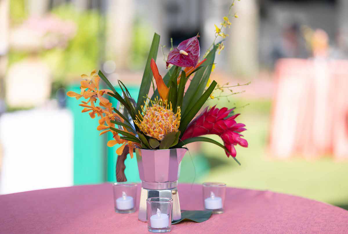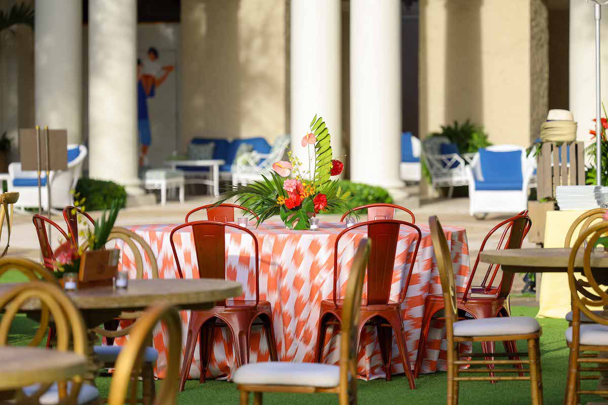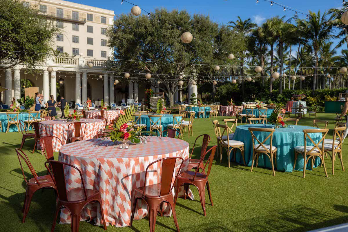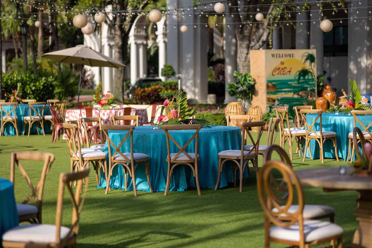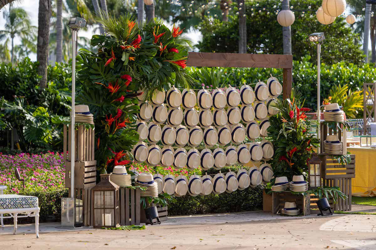 For this corporate retreat at The Breakers Resort in Palm Beach, Florida, we provided a little slice of Cuba with bright colors, a custom fedora hat station, cigar rollers, a Cuban band with dancers, custom step & repeat and tropical floral/ styling.