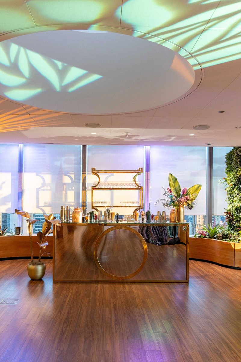 This Salesforce holiday party took place on the iconic Ohana Floor of Salesforce Tower in Midtown NYC, transforming the space into a two-section holiday experience. One side highlighted classic New York holidays with custom marquee posters, a present-wall photo op, and Christmas-themed bars inspired by the Bryant Park Holiday Market. The other side embraced elevated tropical glam, enhancing the Ohana Floor’s signature aesthetic with luxurious details throughout. Entertainment was nonstop with performances from the Rockettes and Broadway stars including the longest running Elphaba in Broadway history, Jackie Burns. Guests also enjoyed craft making, ballet dancers, breakdancing toy soldiers, a dance band, and of course appearances by the Grinch and Santa.