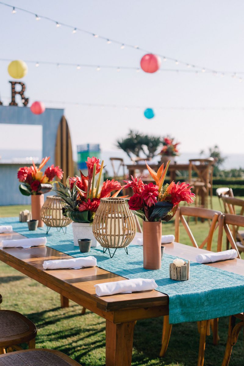 This night was about vibrant pops of color and beachy vibes throughout at Montage Laguna Beach. We brought in a custom built bar, paper lanterns, and entrance treatment, and themed décor to bring this beach party to life!