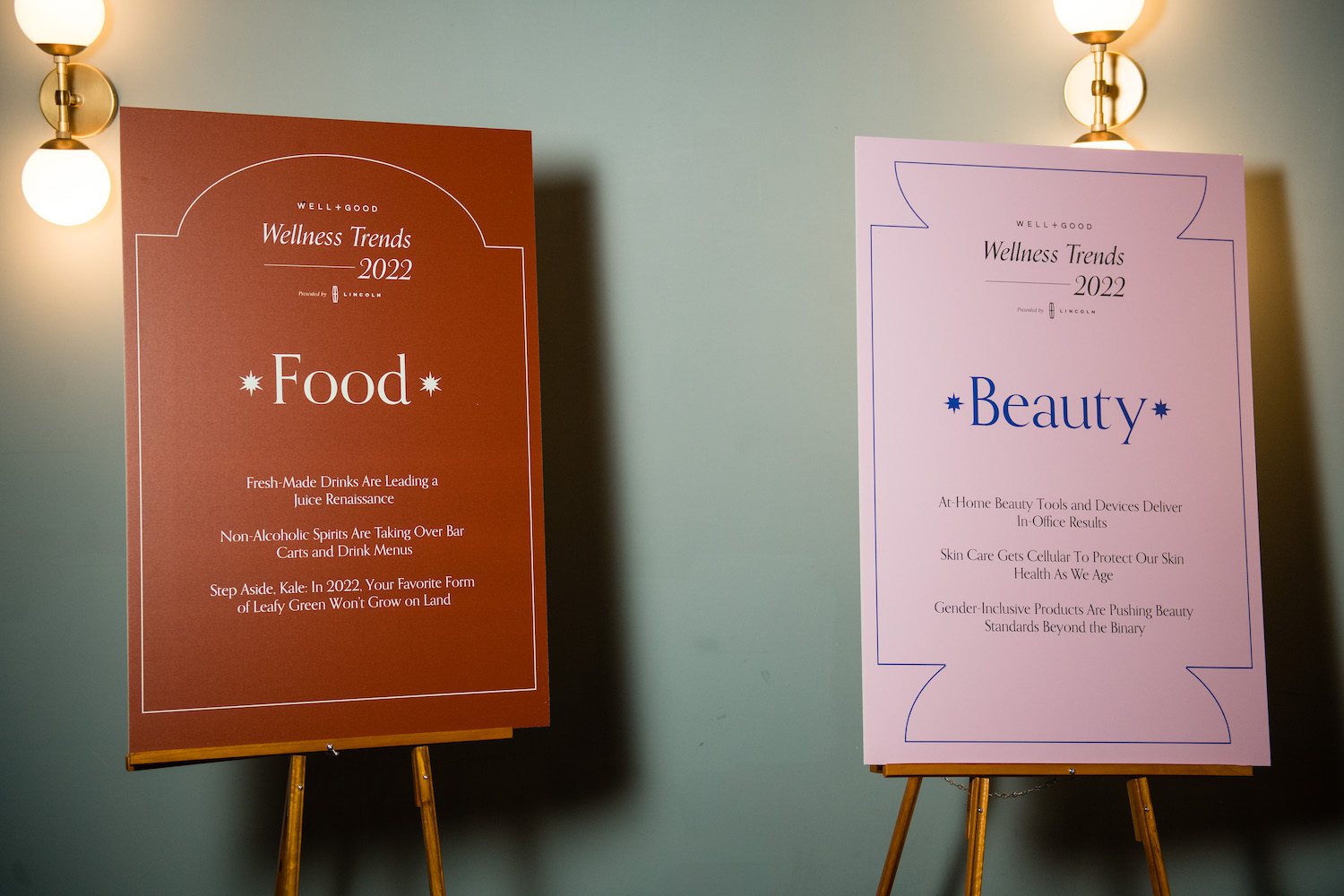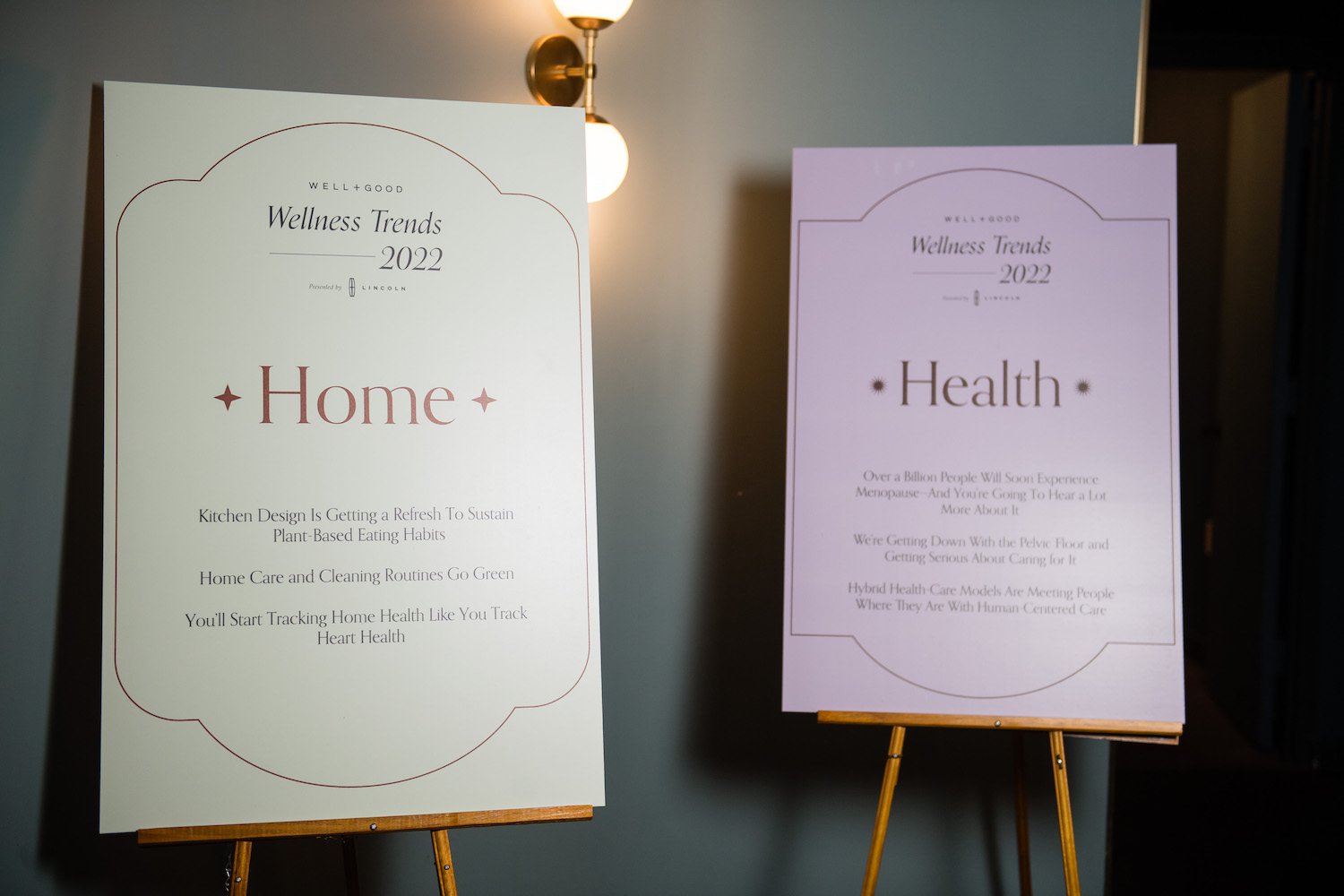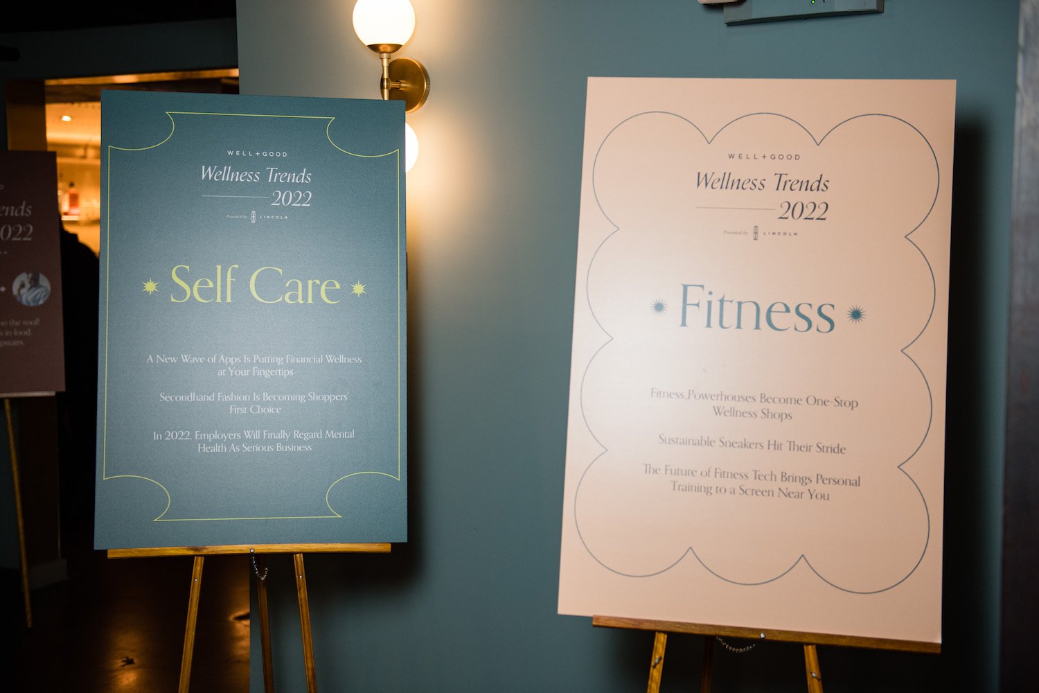 For the Well+Good annual ‘Upcoming Trends’ event at 74 Wythe in Brooklyn, NY, we created brand activations for Beauty & Fitness displaying gender neutral makeup, at-home beauty devices and the new Tempo Move. For sponsor activations, we created the Nest ‘Drift and Dream’ Tea Bar and Lincoln Lounge featuring boho style furniture, massage stations, silent headphones playing the Calm App, gift bag shelving and phone charging stations. F&B trends were showcased with health-conscious tray pass appetizers highlighting the 2022 kelp trend, among other bites, and a non-alcoholic rooftop bar.